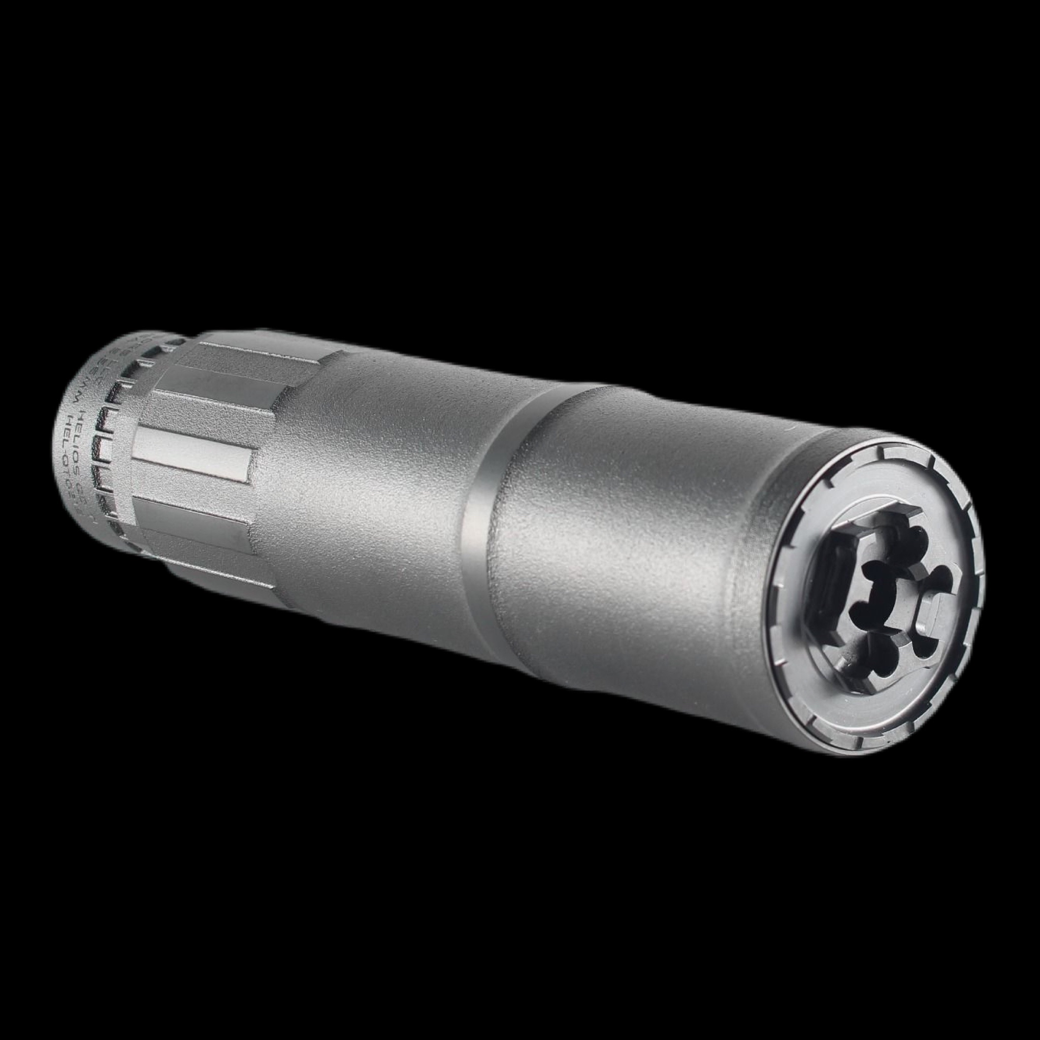 The CGS HELIOS QD Ti is a short, quick attach rifle silencer designed specifically for 5.56mm rifles and carbines. The patented “Varying Core Diameter” technology unique to CGS Suppressors is unlike anything the firearms industry has ever seen before. This unique design allows for peak sound reduction for its size and elimination of the flash signature as well as consistent, minimal and repeatable point of impact shift.  By using a taper interface between the muzzle device and the signature suppressor, we ensure the muzzle device threads will not carbon lock.  The HELIOS QD Ti utilizes a full DMLS Grade V Titanium construction for maximum strength, light weight, and extreme durability.