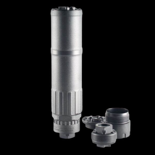 The HELIOS QD Ti is full auto rated with a 10″ minimum barrel length restriction for 5.56mm and will handle larger calibers up to and including 300 Norma Magnum.  The HELIOS QD Ti, just like all CGS Suppressors, has a lifetime warranty.  It has been coated on the exterior with PVD Black DLC and the internal surfaces have been coated with SX Line or Hexagonal Boron Nitride.