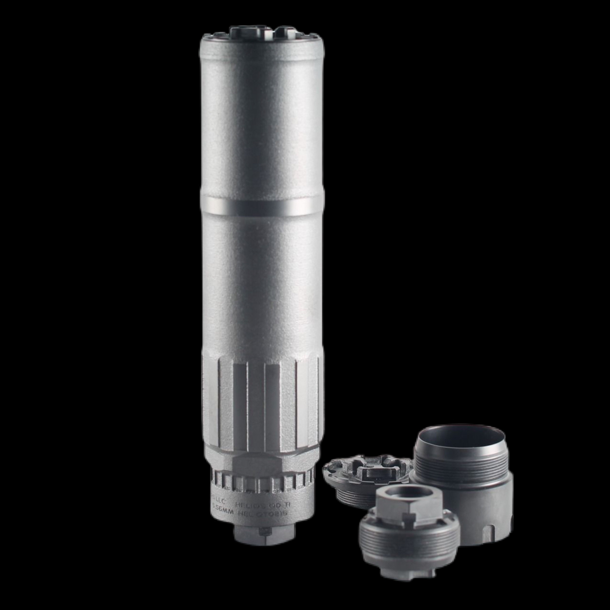 The HELIOS QD Ti system was designed to be extremely versatile.  The generous .36 bore significantly reduces back pressure and muzzle flash while also allowing the suppressor to be used with multiple calibers.  The HELIOS QD Ti comes with a 1/2×28 threaded rear cap, a 5/8×24 threaded rear cap, and an adapter ring threaded in 1.375×24 to accept a plethora of industry QD mounting solutions.  The interchangeable rear caps are complimented with interchangeable front caps as well.  A sealed front cap is provided for the maximum sound reduction possible.  A ported front cap is included to ensure blowback mitigation for left hand shooters or for use with calibers or weapon systems that may be prone to over-gassing.  All tertiary components of the HELIOS QD Ti Kit are also manufactured from Grade V Titanium.
