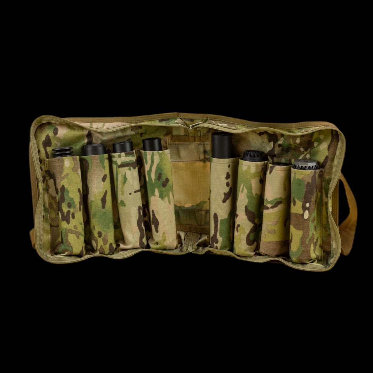 We here at Cole-TAC know that our customers are suppressor enthusiasts, and we like that. Knowing that suppressor ownership is addicting, many of you have amassed a collection. The Suppressor Bag is the best way to store and organize your cans. With enough slots to safely hold 8 suppressors and internal pockets to keep your paperwork, you can travel with everything you need. The Suppressor Bag is made from 1000D Cordura nylon and is securely closed with a zipper. The wide handles allow for comfortable carrying and the Velcro patch is perfect to make the bag your own. Like all of our other Cole-TAC gear, this bag is proudly made in the USA and comes with our lifetime warranty. Get your Suppressor Bag today to keep your cans organized and safe.