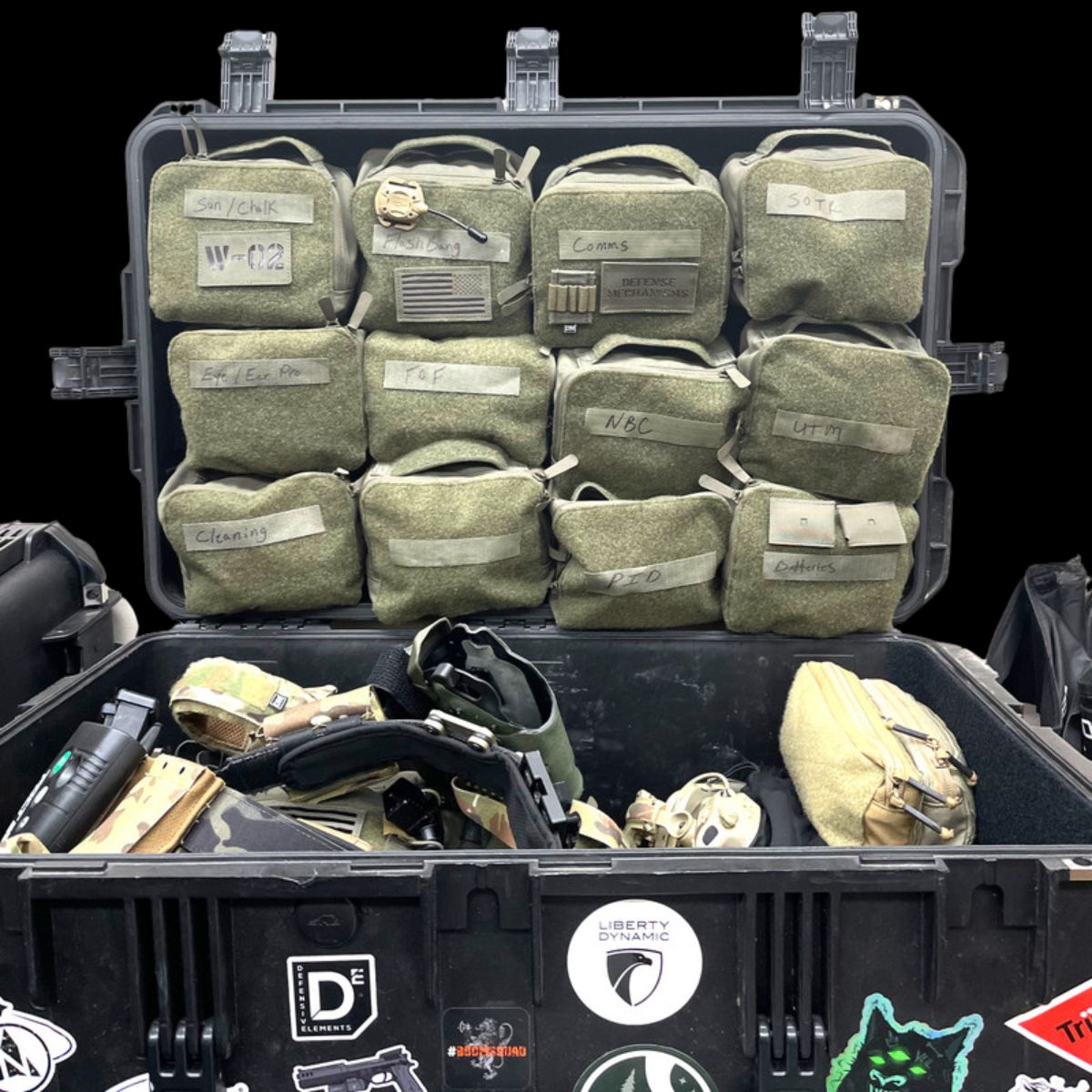 The Defense Mechanisms Kit Organizer Bag is a bag that helps organize your Kit.  It is a hook velcro-backed zipper bag that you can stick to any loop velcro surface giving an identifiable, accessible way to store small gear inside your gearbox.  Access what you need, and stick it right back when you’re done.