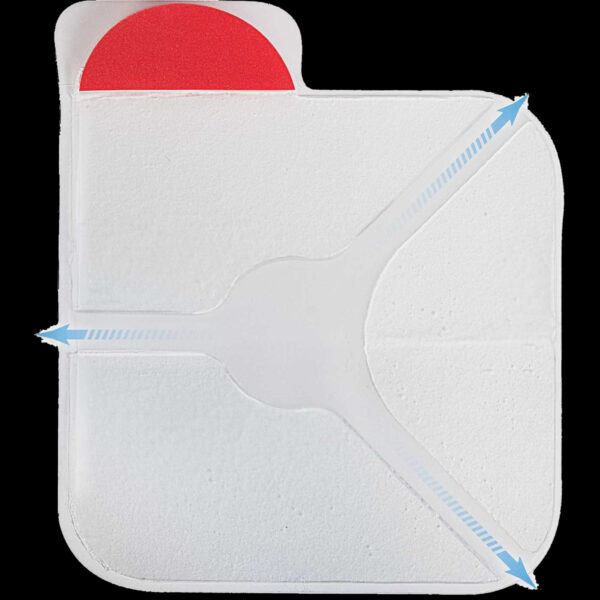 - Easy-to-grip, large red tab for single step, peel-and-apply application that allows for the burping of the wound if necessary